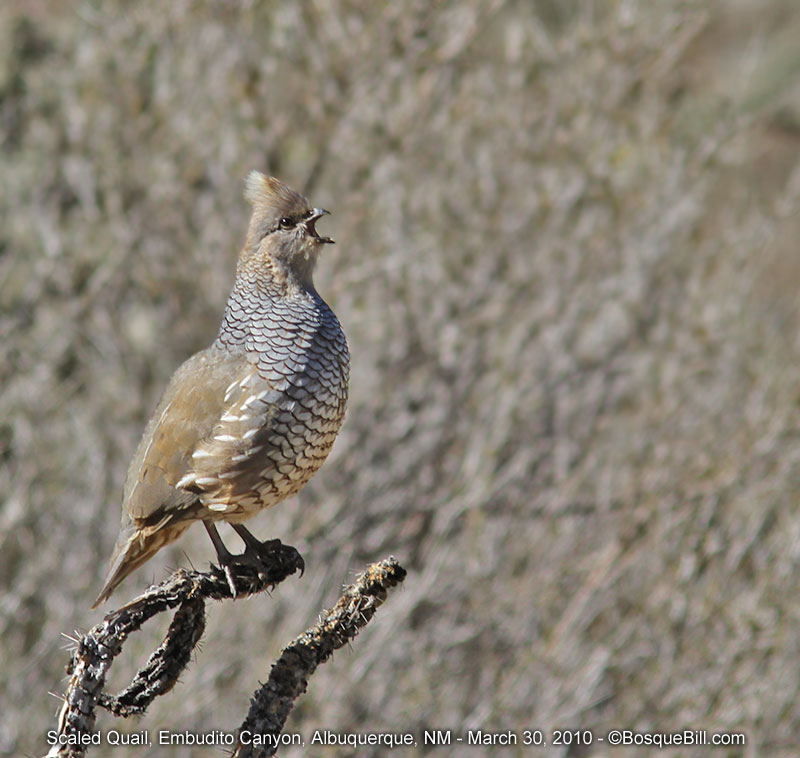 | Scaled Quail This little fellow was calling and calling. Looking for love, I imagine. | |