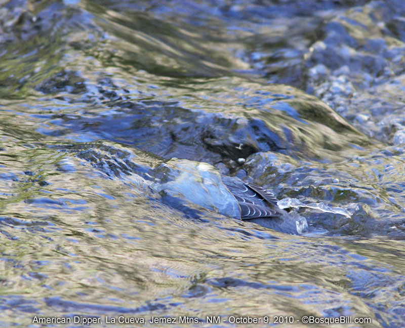 | American Dipper You can only see a bit of the bird's back and wings as it forages. | |