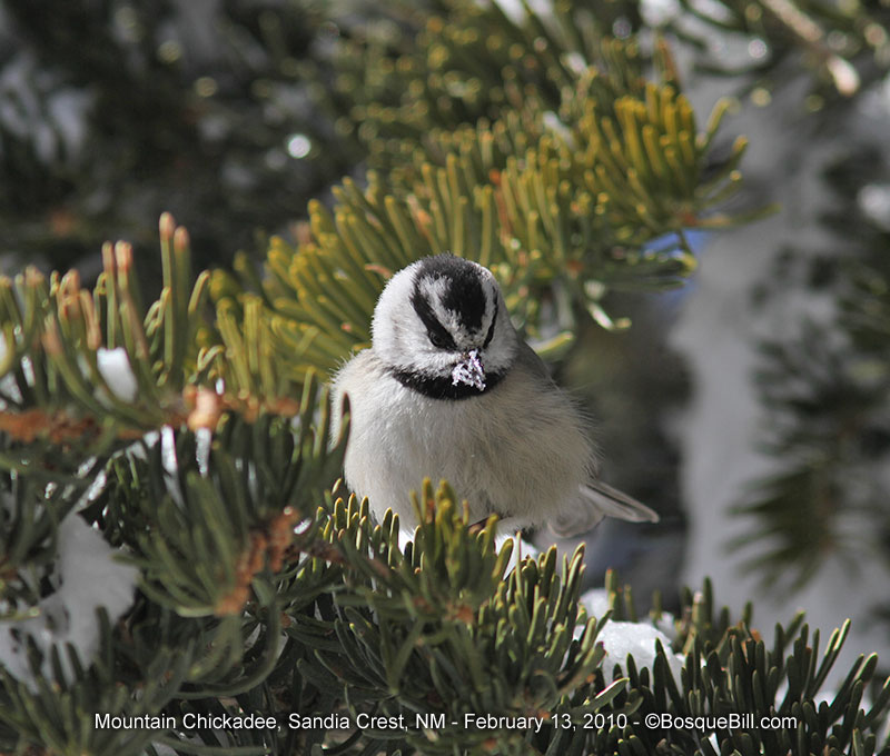 | Mountain Chickadee Cute little chickadee with snoot full of snow. | |