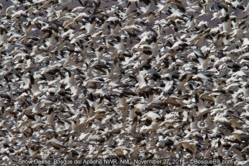 Snow Geese and probably a few Ross's Geese spooked by a Coyote walking into the field