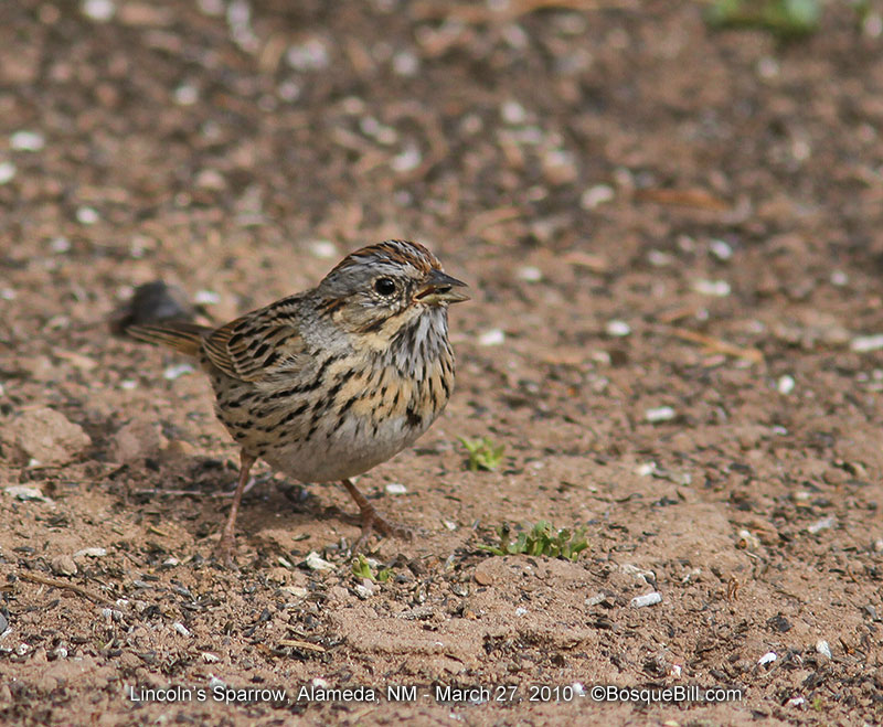 | Lincoln's Sparrow The guide books tend to state that the Lincoln's Sparrow, unlike the Song Sparrow, does not have a central breast spot. As you can see, this is not entirely accurate. | |