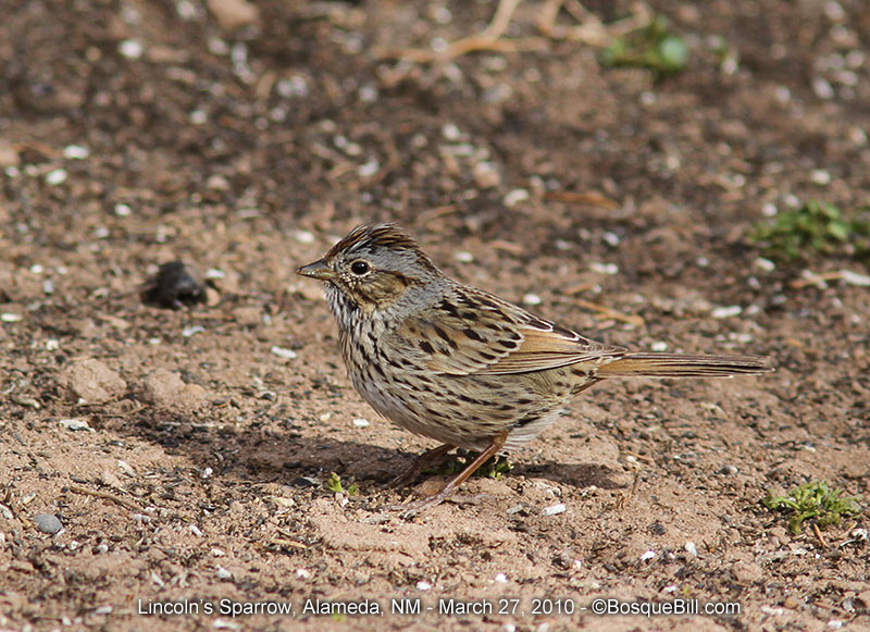 This photo shows the longer, narrower bill, shorter tail, fine streaking and raised crown of this species - comparing to Song Sparrow.