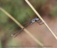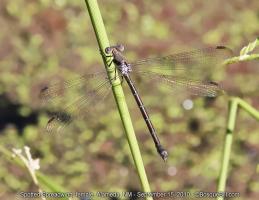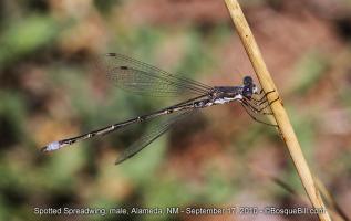 Unlike the typical damselfly the Spotted Spreadwing holds its wings open while perched, hence its name. This species is large for a damselfly, almost as large as a smaller dragonfly.