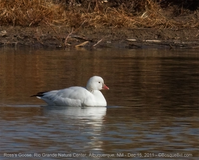 Closely related to Snow Goose, but smaller overall and with smaller bill, too. Does not have the dark "grin line" on edge of bill as Snow Goose.
