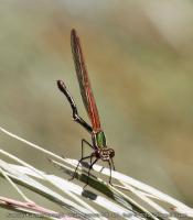 Note the long hair-like, leg spines which are used by Broad-winged Damsels to help catch flies.