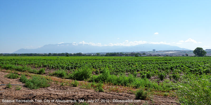 Chile fields along the trail. Sandia Mountains in the background. This is about a half mile north of Rio Bravo Blvd.