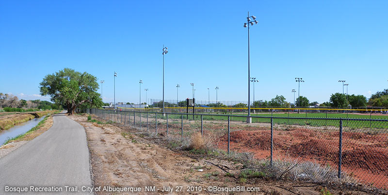 Coming up to the Rio Grande Nature Center, on the right, with foot trails branching off to the left.