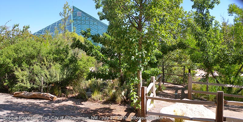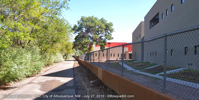 Coming up to the Rio Grande Nature Center, on the right, with foot trails branching off to the left.